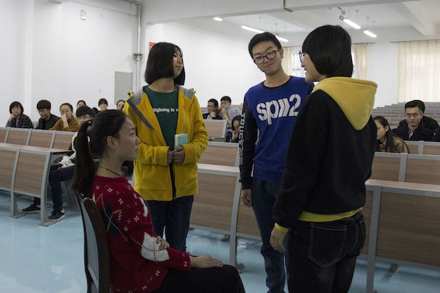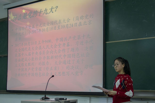 首先会议进行了十九大心得报告分享。2017级护理一班团支部副书记王涛回顾了十九大基本内容,然后号召同学们心怀信念,撸起袖子加油干;2017级护理三班团支部副书记郭佳丽分享了她学习到的党的十九大精神,向我们介绍了什么是党的十九大,提出学习领会大会精神,要有三方面的基本要义,即认识新时代,把握新指南,发展新战略,并总结党的十九大精神。接着全体团委干部观看纪录片《强军》第三集,同学们感触良多,进行观后感分享。最后进行即时情景剧表演。三组同学纷纷积极讨论,认真准备,用他们精彩的表演再现护患关系情景,表演生动,主题深刻。