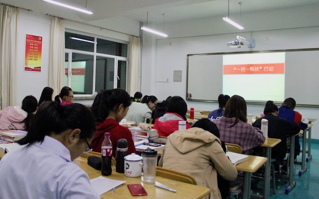 护理学院正处于发展阶段,为了学院鲜活血液的不断注入,新兴发展动力的寻求,并且鉴于护理学属于自然科学与社会科学交汇的综合性科学,2017年学院自成立以来第一次尝试招收文科生。在此情况下,本院15、16级党支部高年级同学于百忙之中举办此活动,针对文科生基础薄弱的生物化学进行一对一补课,帮助他们尽快跟上学习笔伐。