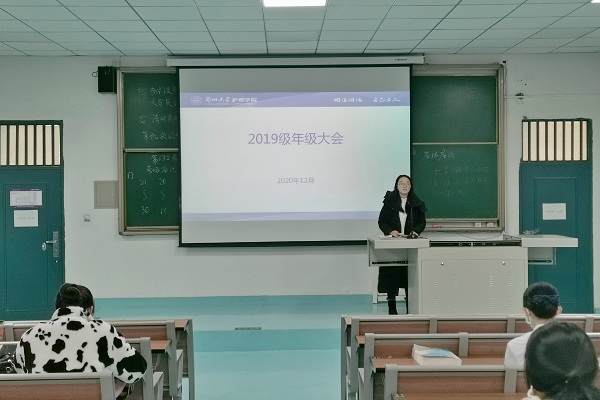 随着期末考试与寒假的临近,为进一步规范同学们的日常行为,鼓励大家认真备考,12月24日,护理学院于教学实验楼104教室召开2019级年级大会,本次大会由学院专职辅导员赵幸主持,2019级全体本科生参加。