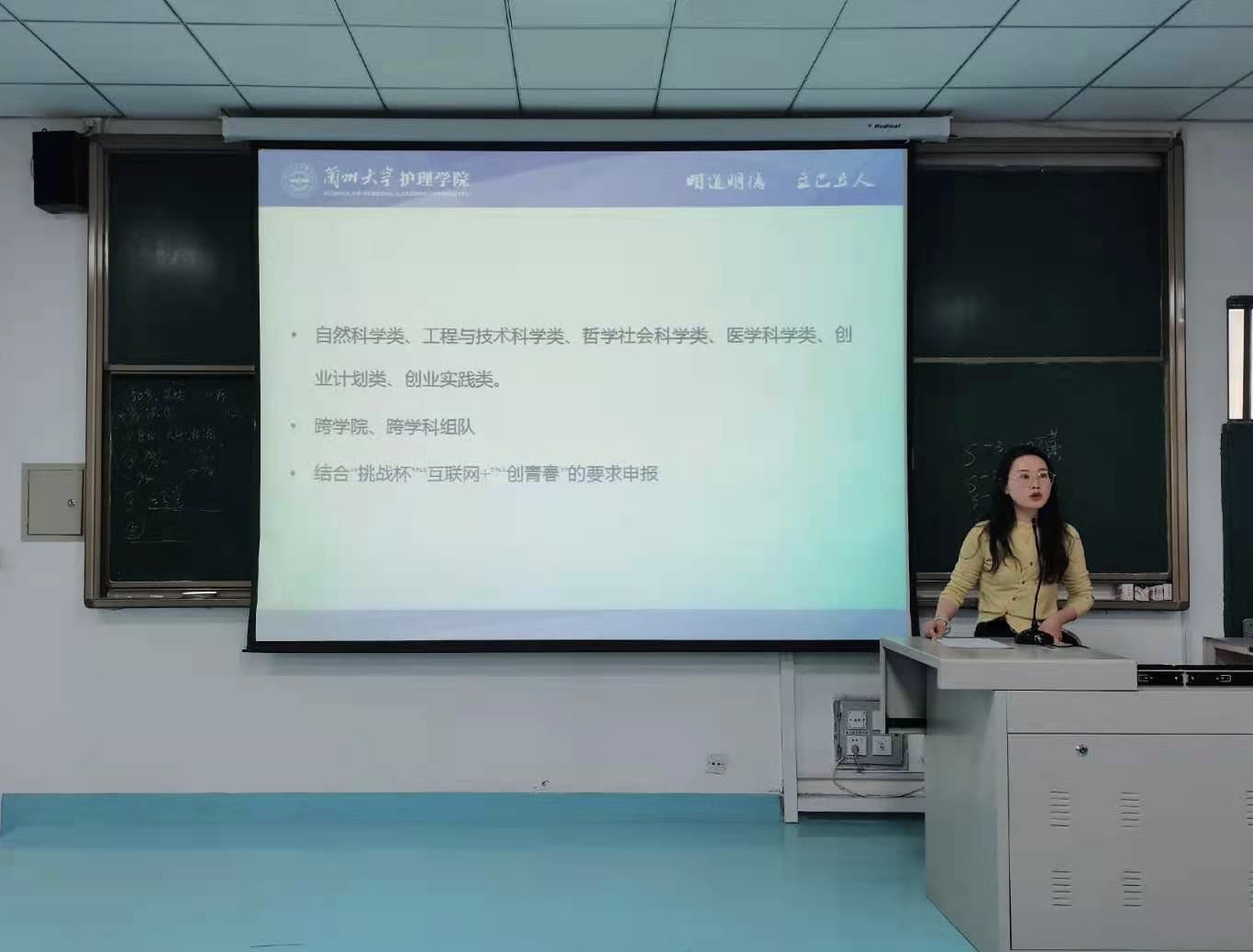 为进一步提高我院学生创新创业意识,提升创新与实践能力,搭建科研创新和创业训练平台,3月11日下午,护理学院在教学实验楼103教室举办了校创、国创动员大会。学院团委副书记苏美文,2020年优秀校创项目负责人、2017级本科生刘群,全体2019、2020级本科生及部分高年级本科生参与大会,会议由学生团委副书记马媛媛主持。